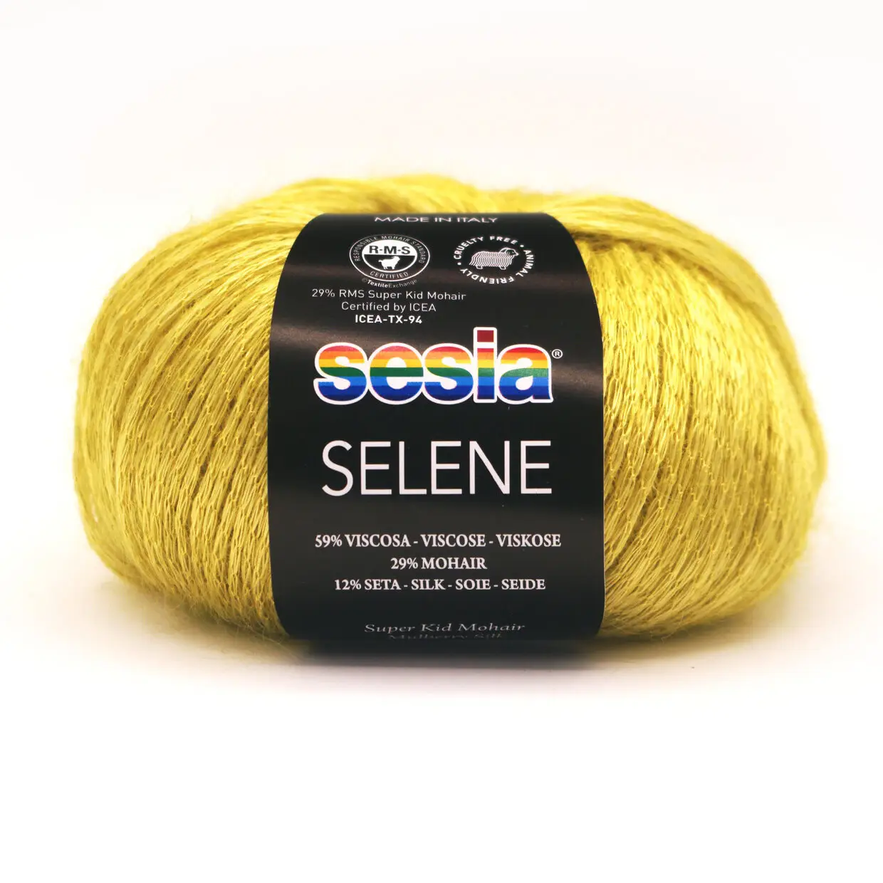 Selene est un fil unique qui combine des fibres apparemment opposées : le Superkid Mohair de qualité supérieure (RMS et cruelty-free), la soie et la viscose. Ce mélange extraordinaire crée un effet chatoyant, particulièrement visible lorsqu’il est travaillé avec des couleurs contrastées, rendant chaque création originale et raffinée.